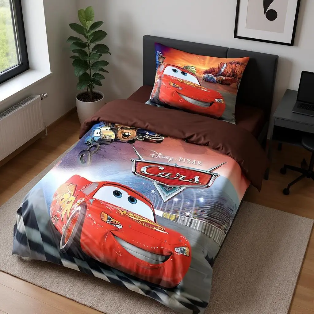 - طراحی دو رو: یک رو با طرح اصلی انیمیشن Cars، روی دیگر پارچه ساده قهوهای برای تنوع