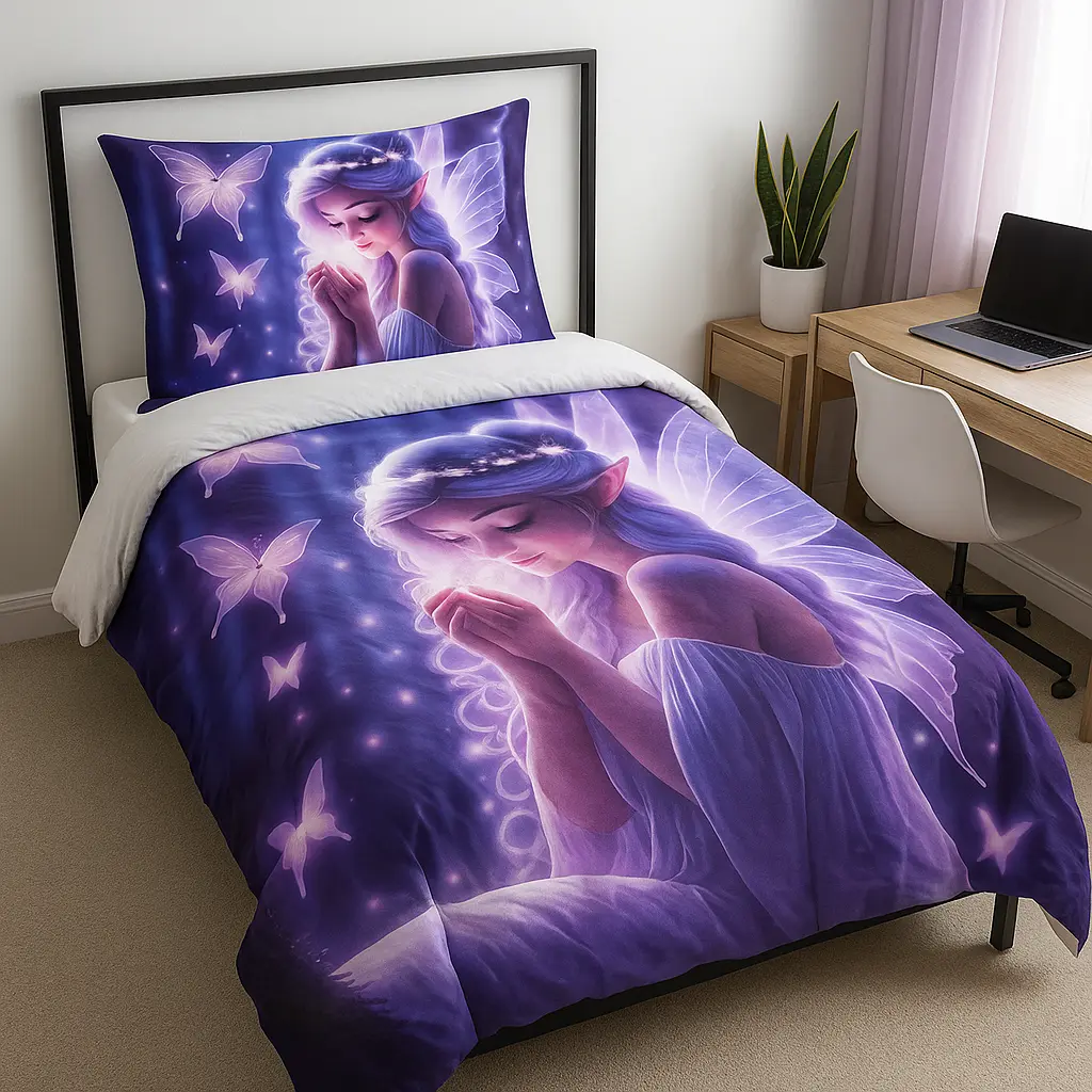در قلب یک جنگل باستانی، جایی که نور ماه هرگز خاموش نمیشود، پریای به نام «لورین» زندگی میکند. او نگهبان رویاهای شیرین و نجواهای آرامشبخش است. هر شب، او نور ستارگان را در دستانش جمع میکند و آن را به پروانههای نورانی میسپارد تا به اتاق خواب کودکانی که قلبی پاک دارند، پرواز کنند و خوابی آرام را برایشان به ارمغان بیاورند. این روتختی، تصویر همان لحظه مقدس است.