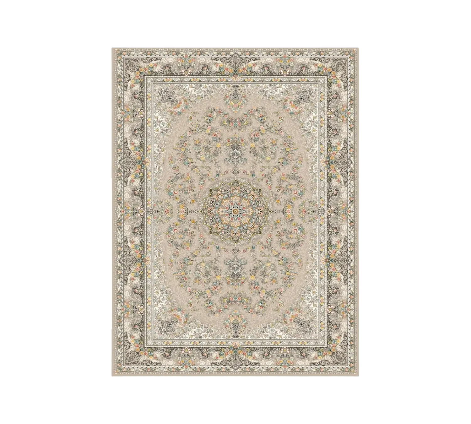 - هماهنگی با دکوراسیون: این فرشینه به راحتی با مبلمان سفید، کرم، بژ و چوبی روشن ست میشود. همچنین میتوانید از رنگ گلهای آن برای انتخاب رنگ کوسنها یا پردهها الهام بگیرید.