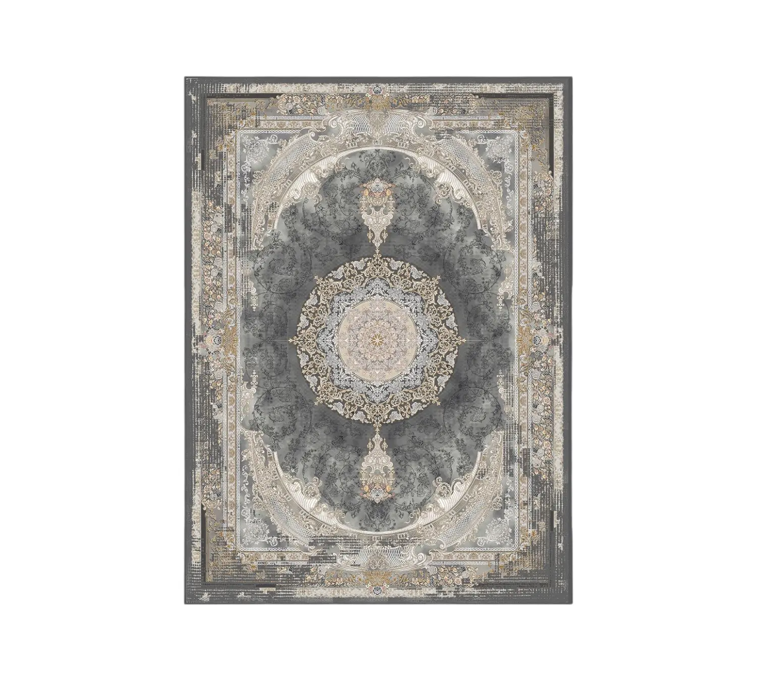 برند «ترک ایپلیک» با ارائه این طرح، شما را به چالشی بصری دعوت میکند. در نگاه اول، زمینهی طوسی دودی و مرمرین آن، حسی از قدرت و آرامشی اسرارآمیز را القا میکند. اما با کمی دقت، از دل این پسزمینه طوفانی، نقوش آشنای هنر کلاسیک با رنگهای گرم طلایی و کرم، چون جزایری امن و درخشان، پدیدار میشوند. این فرشینه، داستان تقابل و در نهایت، همنشینی زیبای قدرت و لطافت است.