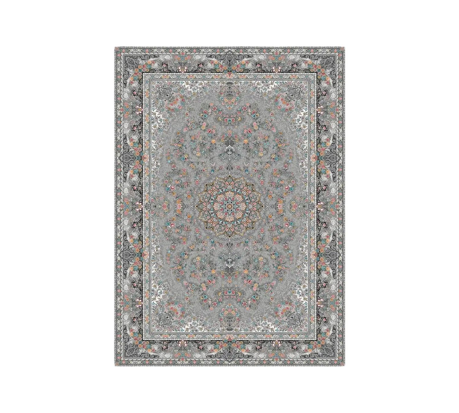 - 🌸 طراحی بینظیر و چشمنواز: تصور کنید هزاران شکوفه رنگی (صورتی، آبی، زرد) روی یک زمینه طوسی شیک و مدرن نشستهاند. این تضاد هوشمندانه، فضایی پر از انرژی خلق میکند بدون اینکه چشم را خسته یا خانه را شلوغ نشان دهد. این کفپوش شیک، مرکز توجه هر مهمانی خواهد بود.