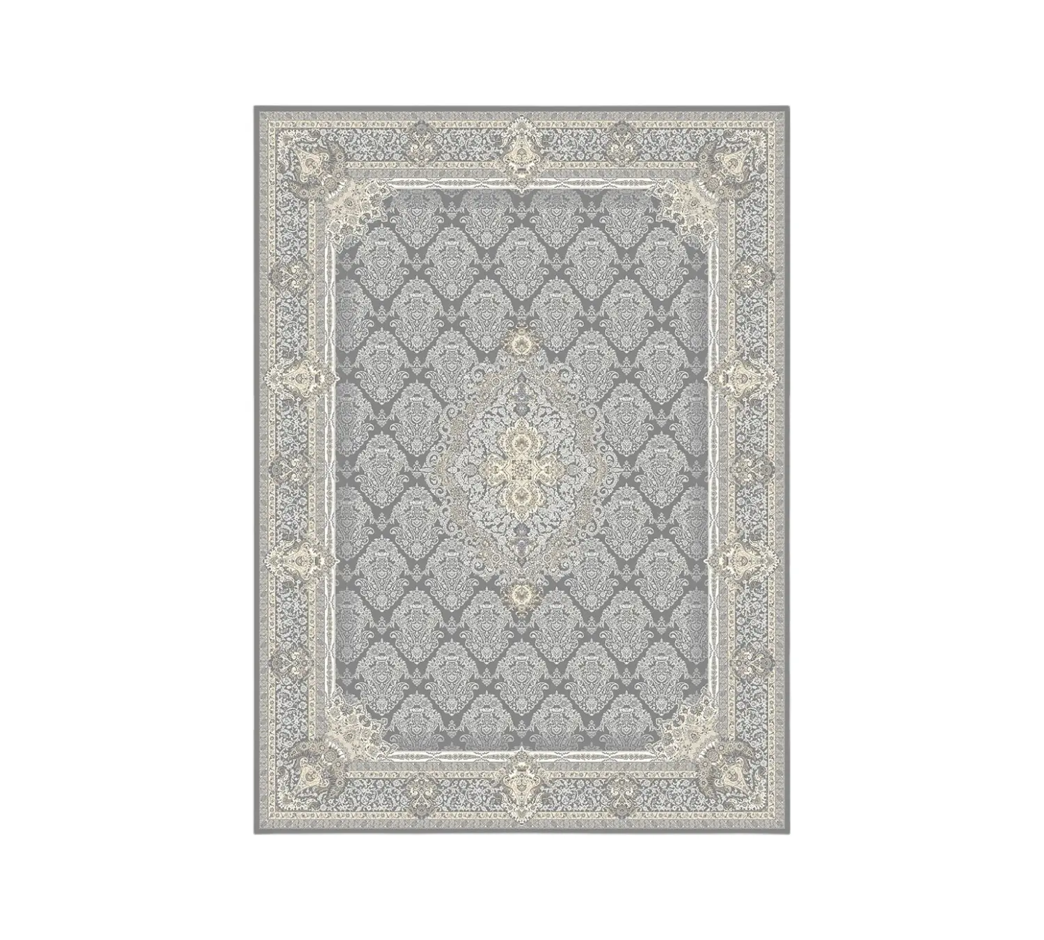 - خاکستری ذغالی و نقرهای: نقوش اصلی با ترکیبی از خاکستریهای تیره (ذغالی) و روشن (نقرهای) اجرا شدهاند که تضادی شیک و مدرن ایجاد میکند.